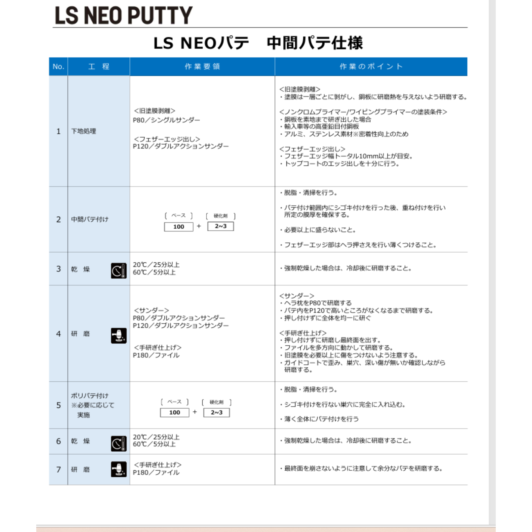*混合比:LS NEOパテ主剤 100%に対して、硬化剤を2~3%混合して、ヘラなどでよく混ぜてください。